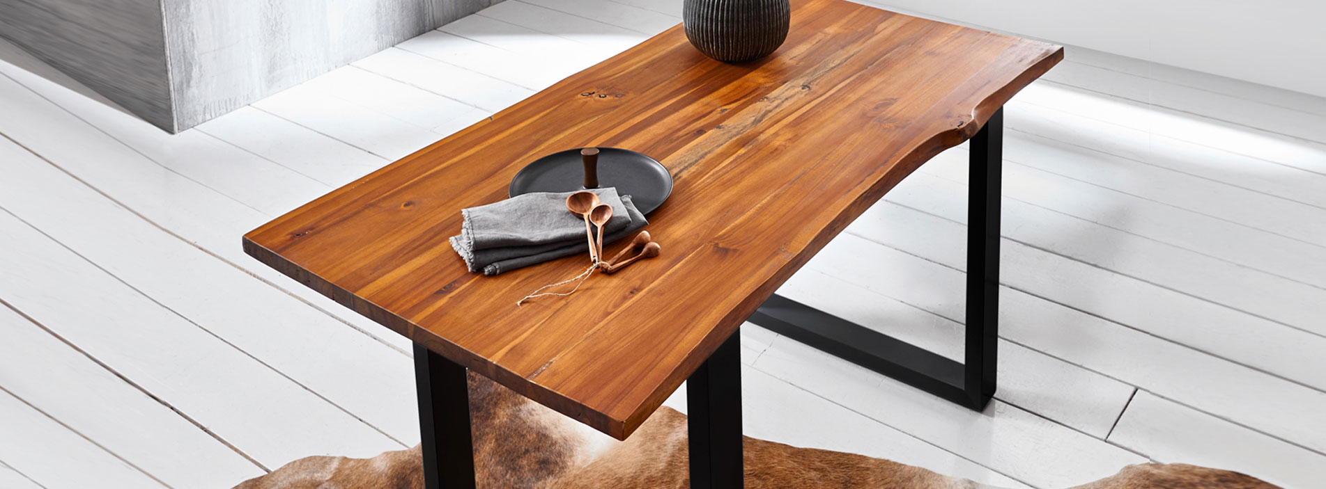 ESSTISCH BAUMKANTE AKAZIE NUSSBAUM 120 x 80 CM SILBER NOAH